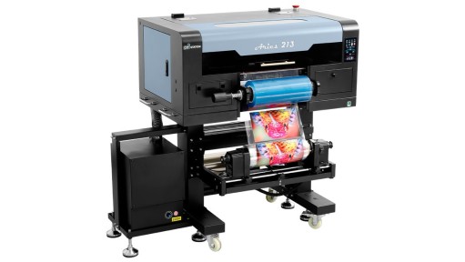 Aries 213 – vylepšený model oblíbeného Aries 113, který posouvá možnosti UV‑DTF tisku ještě dál. Aries 213 je kompaktní zařízení 2‑v‑1, které tiskne i laminuje v jednom pracovním kroku, takže výsledné fólie jsou připravené k dalšímu použití bez nutnosti dalšího zařízení či úprav.