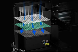 S průmyslovou tiskovou hlavou Epson I3200HD‑U1 dosahuje výrazných barev a ostrých detailů s rozlišením až 720×1800 dpi. Integrovaný systém bílé barvy s cirkulací a automatickým čištěním snižuje množství údržby a zvyšuje spolehlivost tisku.