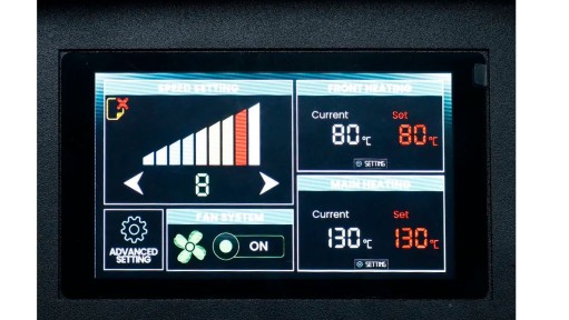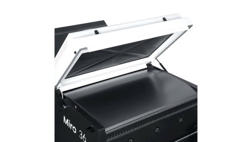 Miro 36 Shaker nabízí řadu vlastností, které zajišťují efektivní a spolehlivý DTF tisk. Patentovaný systém spodního ohřevu zaručuje rovnoměrné a konzistentní vytvrzení potisků, zatímco vestavěný filtr a systém čištění vzduchu eliminují kouř a přispívají k bezpečnému pracovnímu prostředí. Zařízení je snadno zapojitelné bez potřeby speciálních úprav elektrické sítě a modulární konstrukce ve dvou dílech umožňuje jeho snadný průchod standardními dveřmi a rychlou montáž. Přesné zarovnání folie je zajištěno pomocí integrovaného měřítka a zakřivené ohřívací podložky. Intuitivní dotykový displej umožňuje jednoduché nastavení a ovládání celého procesu.