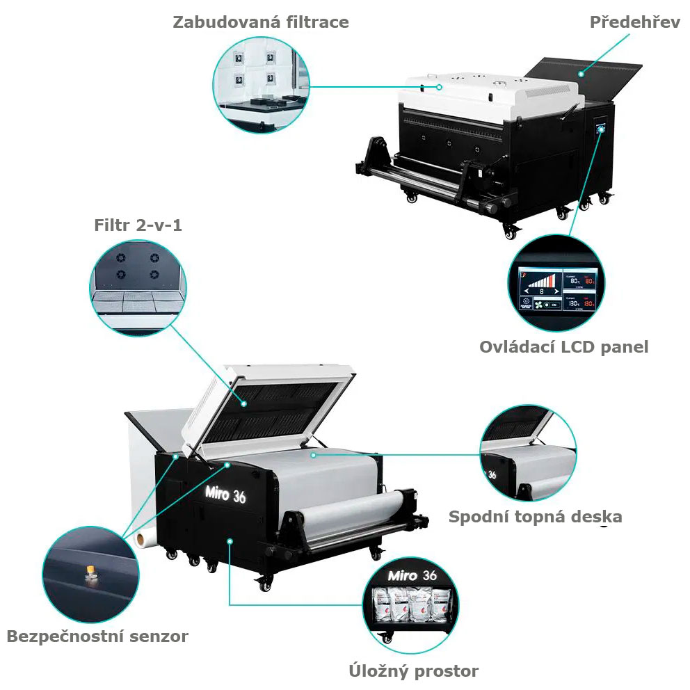 Automatizujte DTF produkci s MIRO 36 – precizní posyp a sušení lepidla