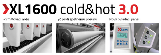 Laminátory Xlam 1600 Cold&Hot 3.0 a Xlam 1600 Cold&Hot Signage mají robustní konstrukci, silikonové válce o průměru 130mm, snadno se ovládají a mají navíjení zalaminovaného materiálu. Tato řada laminátorů je vybavena vyhříváním horního válce, který je možno zahřát až na 120°C. Výhodou zahřátého válce je, že zahřáté lepidlo laminační fólie lépe přilne k laminovanému materiálu. Výhodou jsou i hřídele pro odvíjení a navíjení materiálu s rychloupínacími svorkami. Stroje se ovládají buď z přehledné řídící desky nebo nožním spínačem a lze nastavit i zpětný chod. Obsluha jistě ocení při zakládání široký pracovní pult, držák náhradní role ve stojanu laminátoru nebo bezpečnostní kryt.