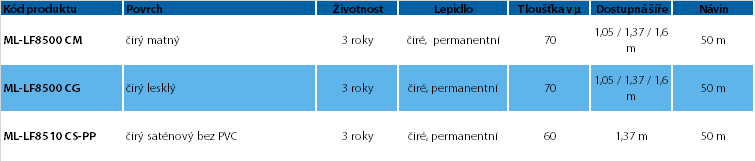 LF 8500 - 70μm monomerický laminační film Mactac. Životnost 3 roky, dostupná šíře 105, 137, 160 cm, návin 50 m. Doporučené v kombinaci s tiskovou fólií Mactac řada JT 8500.