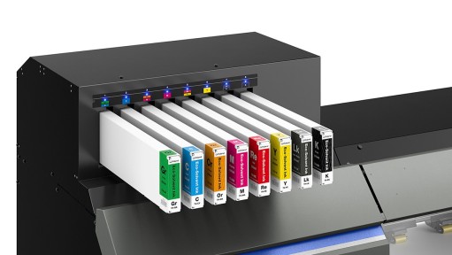 - Nově vyvinutý přímý červený inkoust spolu s CMYK, světle černou, zelenou a oranžovou pro výrazně rozšířený barevný gamut