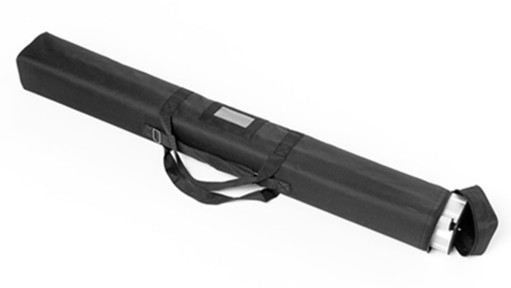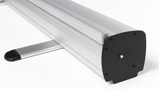 Základní reklamní hliníkový stojan, v moderním designu, s vyztuženým úchytem tyče v základně. K dodání včetně polyesterové tašky.